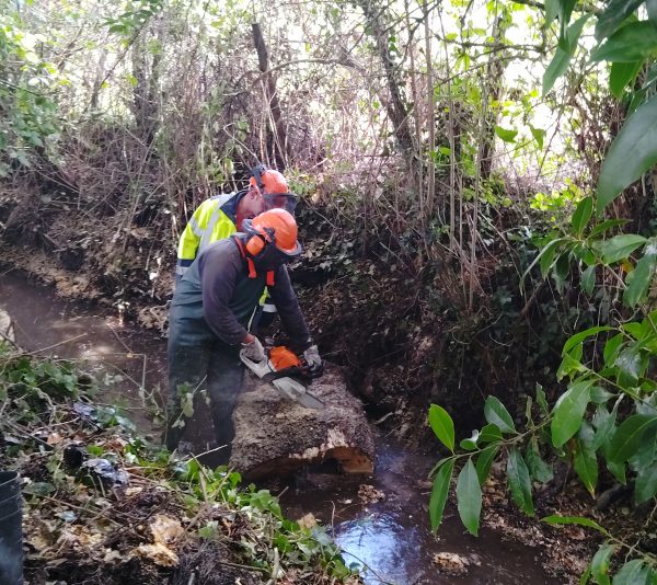 Deux entreprises locales spécialisées dans les travaux d’entretien de cours d’eau sont intervenues :
